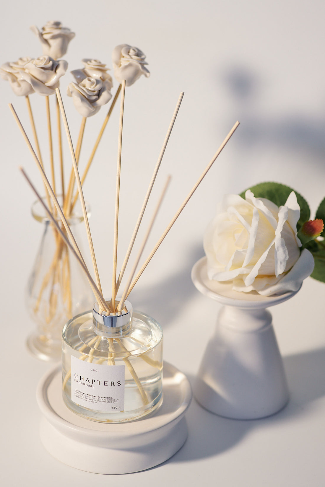 Create an immersive atmosphere by combining a Scented Candle, Reed Diffuser, Aroma Oil and Room Fragrance from the same Chapter. This creates a multi-dimensional scent experience that lingers beautifully throughout your space.